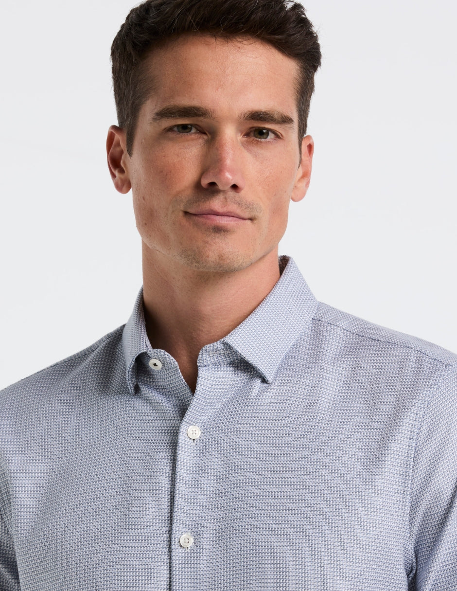 Camisa Slim Fit Azul Claro con Microtextura y Cuello Expandible