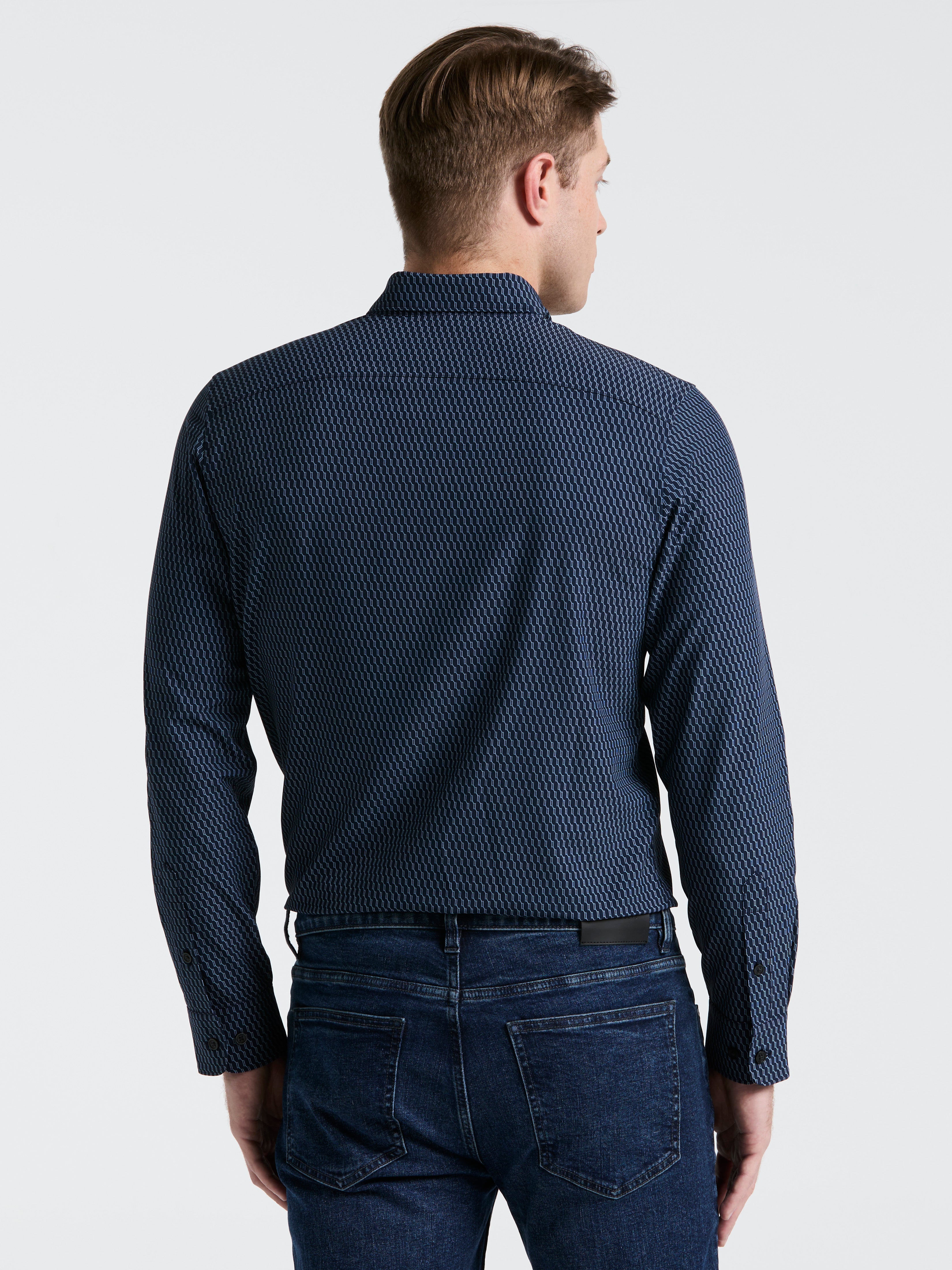 Camisa Slim Fit de Manga Larga Dark Sapphire con Estampado Geométrico