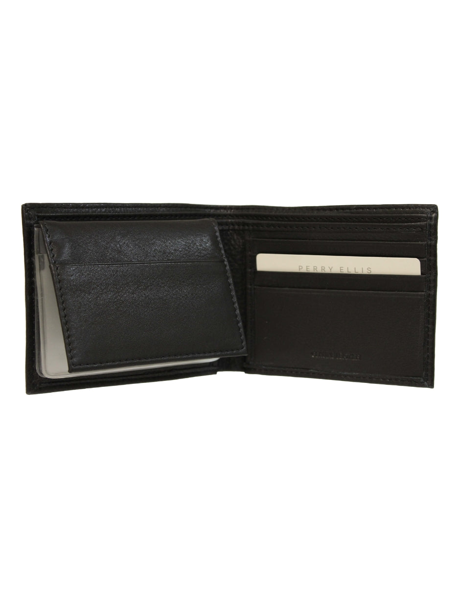 La cartera Perry Ellis en piel negra representa la elegancia minimalista en su máxima expresión. Su acabado texturizado y diseño limpio la convierten en un accesorio esencial para el hombre moderno que busca practicidad. Un clásico contemporáneo que refleja la calidad distintiva de Perry Ellis.
