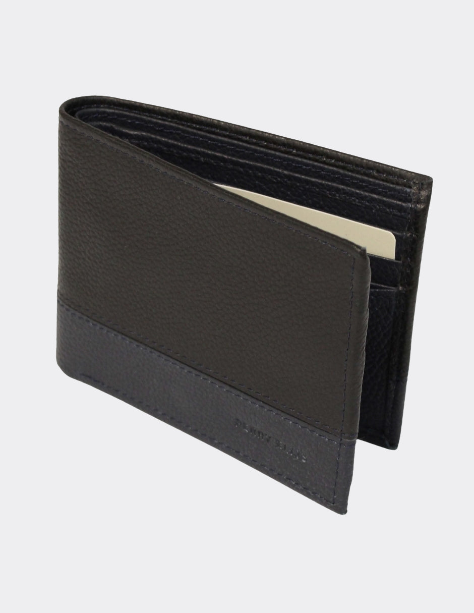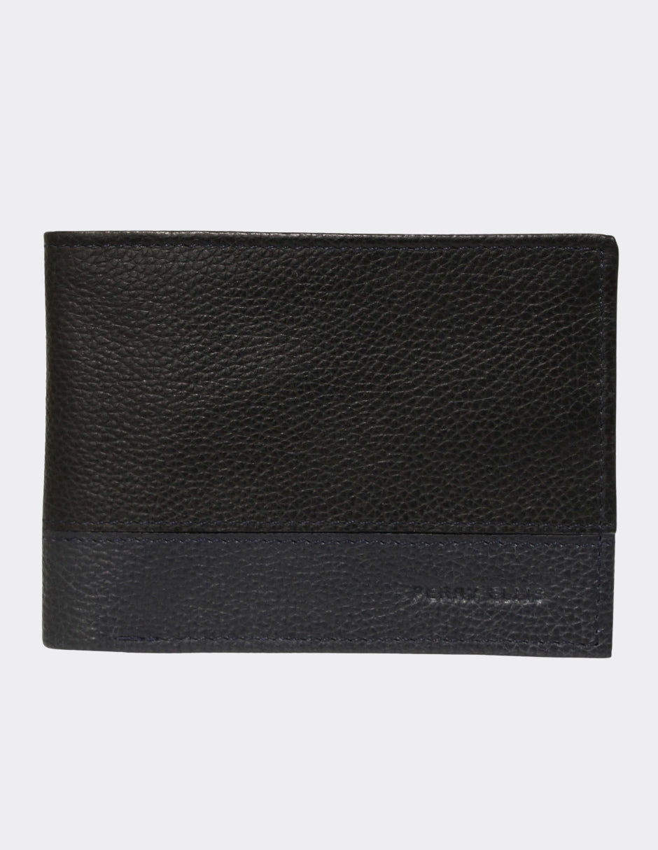 La cartera en piel negra combina elegancia atemporal y funcionalidad moderna. Su diseño con banda inferior y textura granulada ofrece un equilibrio perfecto entre estilo y durabilidad, ideal para el hombre que busca sofisticación en los detalles. Fabricada con piel genuina de alta calidad, su estructura compacta permite llevar lo esencial con comodidad y distinción.