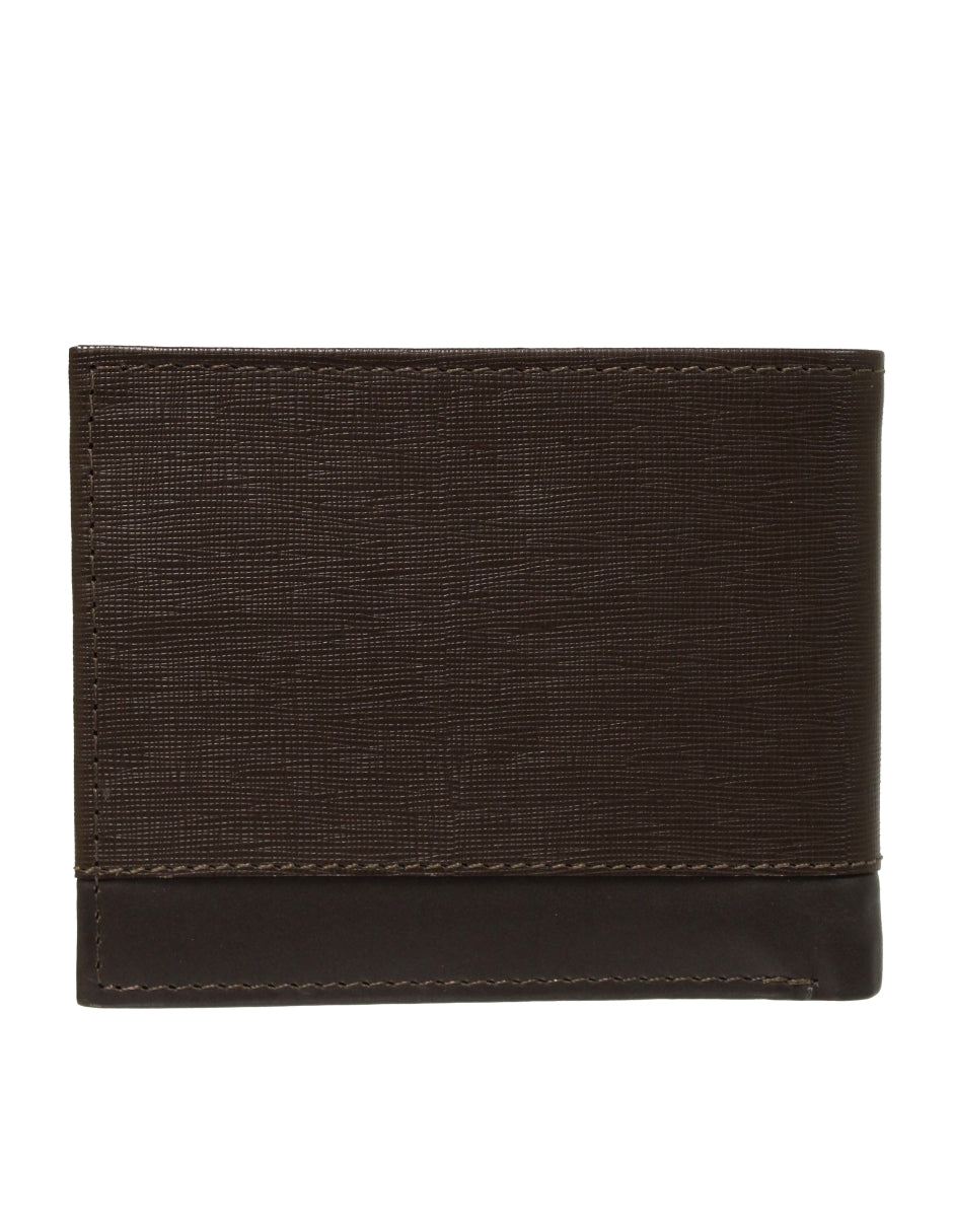 La cartera en tono café vino combina distinción y modernidad con un diseño elegante y funcional. Su superficie con textura tipo Saffiano y la franja inferior en piel lisa crean un contraste sofisticado que resalta su carácter premium. Ideal para el hombre que valora la calidad y el estilo refinado, ofrece el espacio justo para organizar billetes, tarjetas y credenciales sin perder su formato delgado y cómodo.