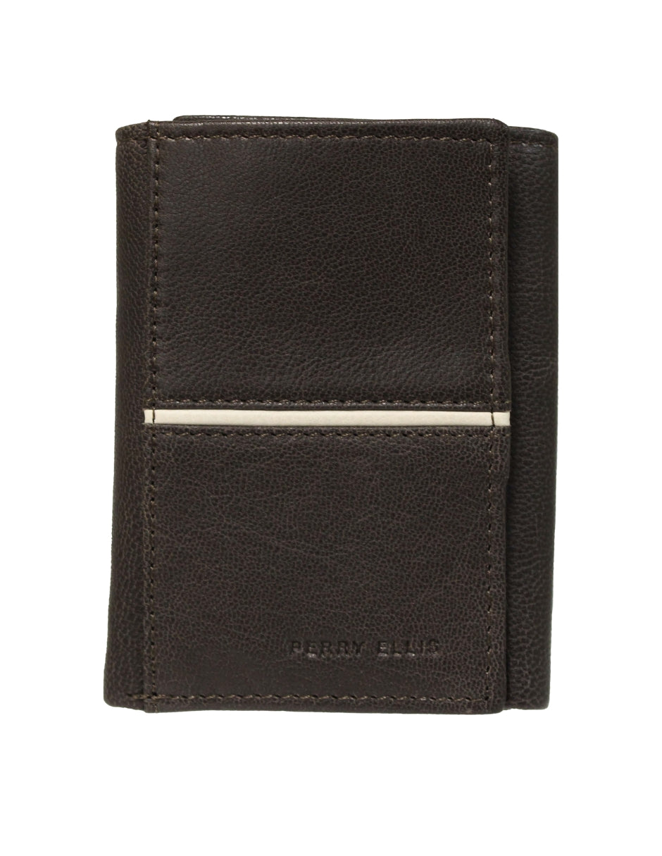 Cartera Trifold Perry Ellis de Piel Negra con Detalle Blanco