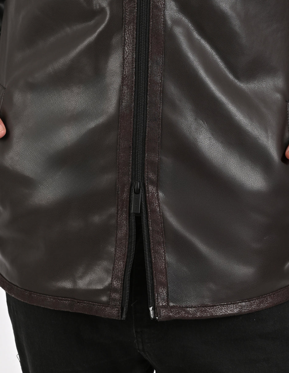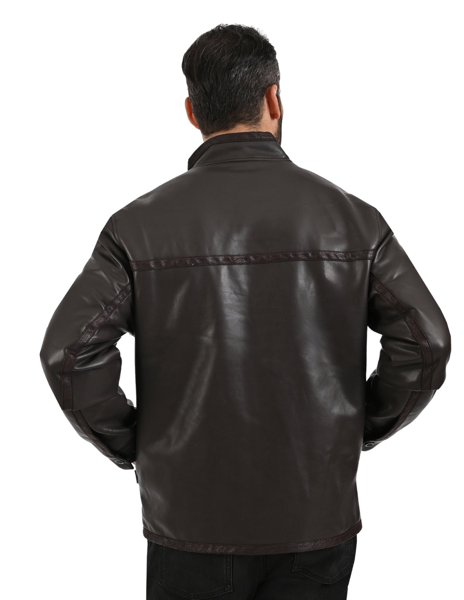 Chamarra Café Oscuro Tipo Action Leather con Cuello Alto