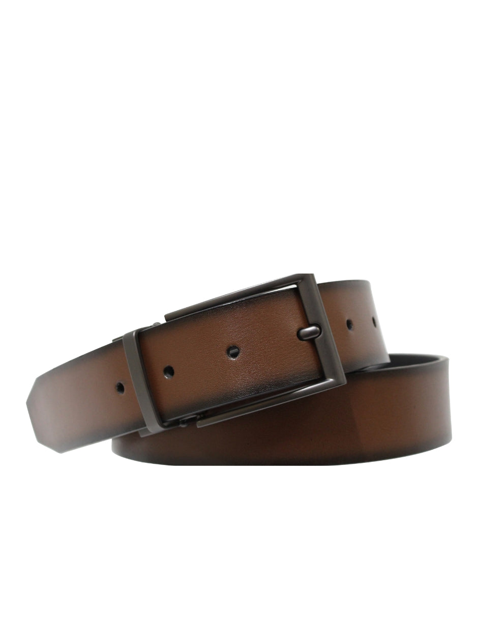 Cinturón Reversible Café y Negro de Piel con Hebilla Grafito