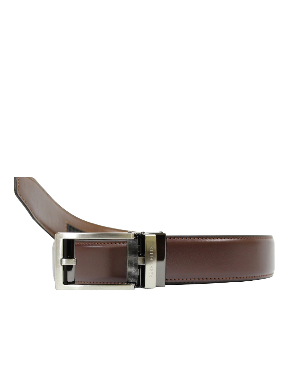 Es la combinación perfecta entre funcionalidad y elegancia. Fabricado en piel genuina de acabado liso, su diseño reversible te permite alternar entre tonos clásicos para adaptarte a cualquier ocasión. La hebilla metálica en níquel cepillado aporta un toque moderno y sofisticado, mientras el grabado Perry Ellis reafirma su carácter premium. Ideal para quienes valoran el detalle y la versatilidad