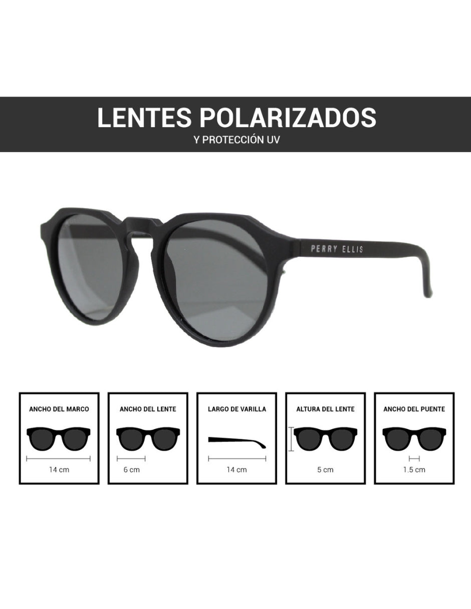 Los lentes de sol Perry Ellis en diseño redondo con acabado negro mate son la definición de minimalismo con carácter. Un accesorio versátil, diseñado para el hombre que proyecta autenticidad, seguridad y estilo sin esfuerzo.
