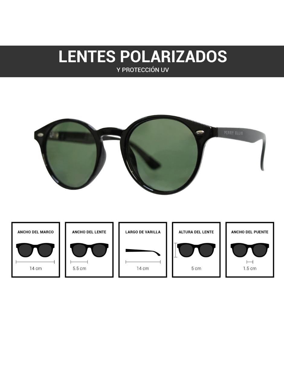 Los lentes de sol Perry Ellis con diseño redondo en acetato negro son el accesorio ideal. Su marco grueso aporta carácter y presencia, mientras que las micas verdes oscuras ofrecen protección visual y un look versátil que se adapta a cualquier ocasión. Perfectos para acompañar tanto un outfit urbano como uno más elegante.