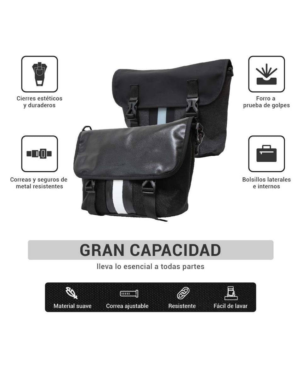 Messenger Crossbody Negra 2 en 1 con Correas Ajustables y Forro Protector