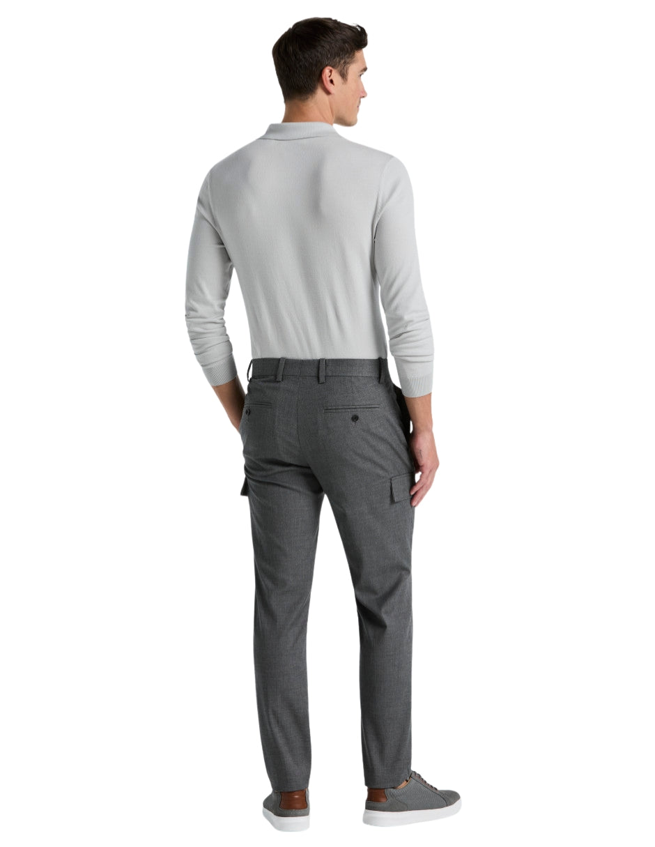 Estilo y funcionalidad en una sola prenda. Este pantalón Perry Ellis cargo de vestir en color Lava Smoke Htr está confeccionado con una mezcla de poliéster, viscosa y elastano que ofrece ligereza, resistencia y un toque de elasticidad para mayor comodidad. Su corte slim entallado estiliza la silueta, mientras que los bolsillos laterales cargo aportan practicidad para llevar lo esencial con facilidad. Un básico versátil para looks urbanos o casuales elegantes.