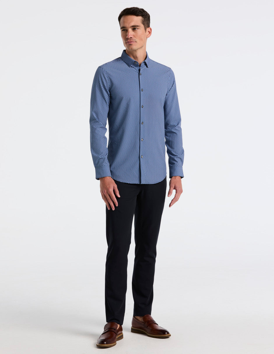 Comodidad y estilo que acompañan tu ritmo diario. Este pantalón Perry Ellis en color Lava Smoke Heather está confeccionado con fibras recicladas Repreve™ Polyester, viscosa y elastano, lo que garantiza suavidad, ligereza y elasticidad en cuatro direcciones para una movilidad total. Un diseño versátil y moderno que se adapta tanto a la oficina como a un look casual refinado.
