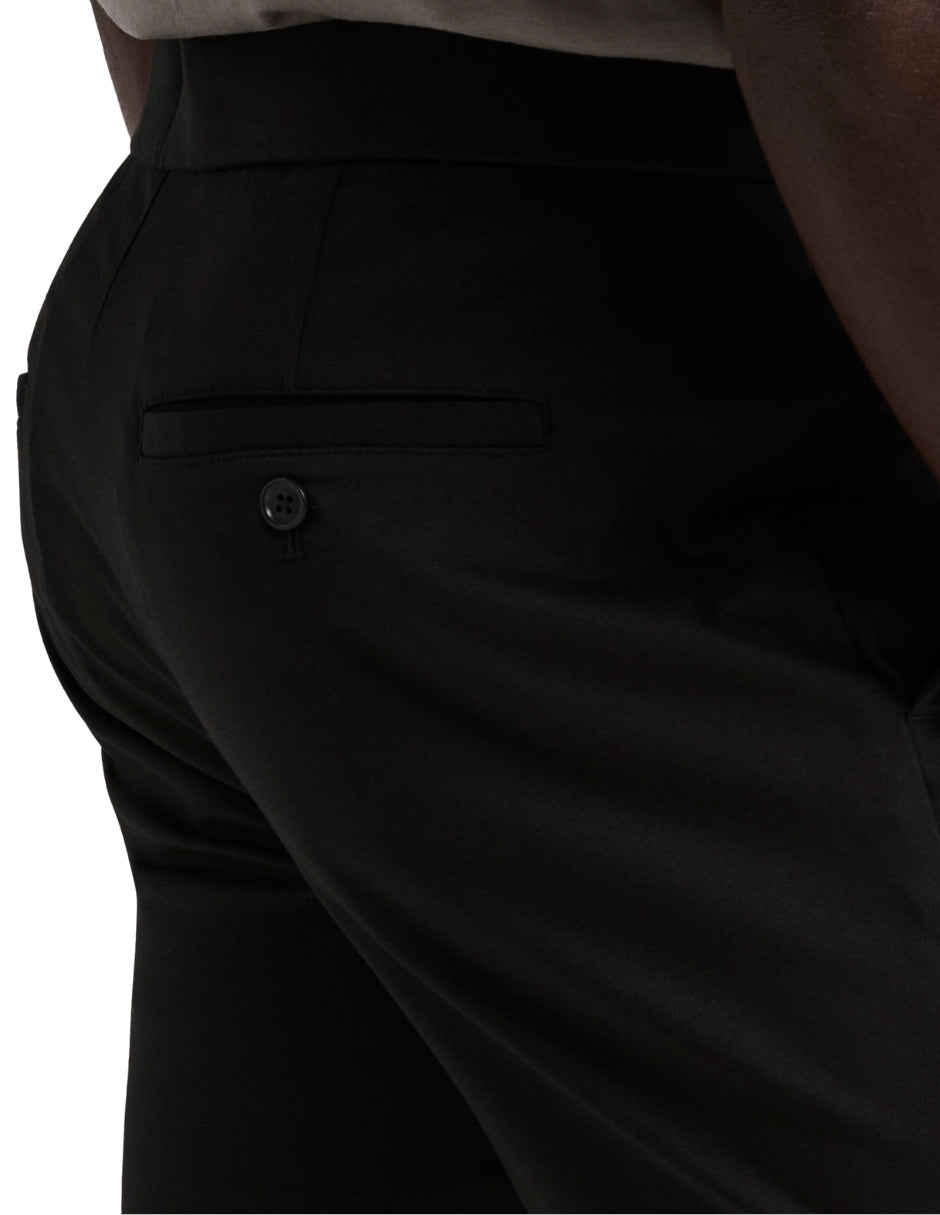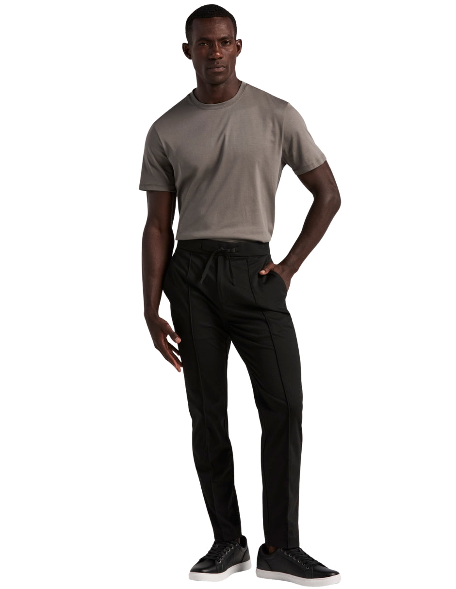 Funcionalidad y estilo en una sola prenda. Este pantalón Perry Ellis en color negro está diseñado con un ajuste slim fit de pierna entallada que estiliza la silueta, combinado con una pretina elástica que brinda comodidad durante todo el día. Su confección en poliéster, elastano y viscosa ofrece suavidad, ligereza y elasticidad, convirtiéndolo en una opción versátil para looks casuales, urbanos o de viaje.
