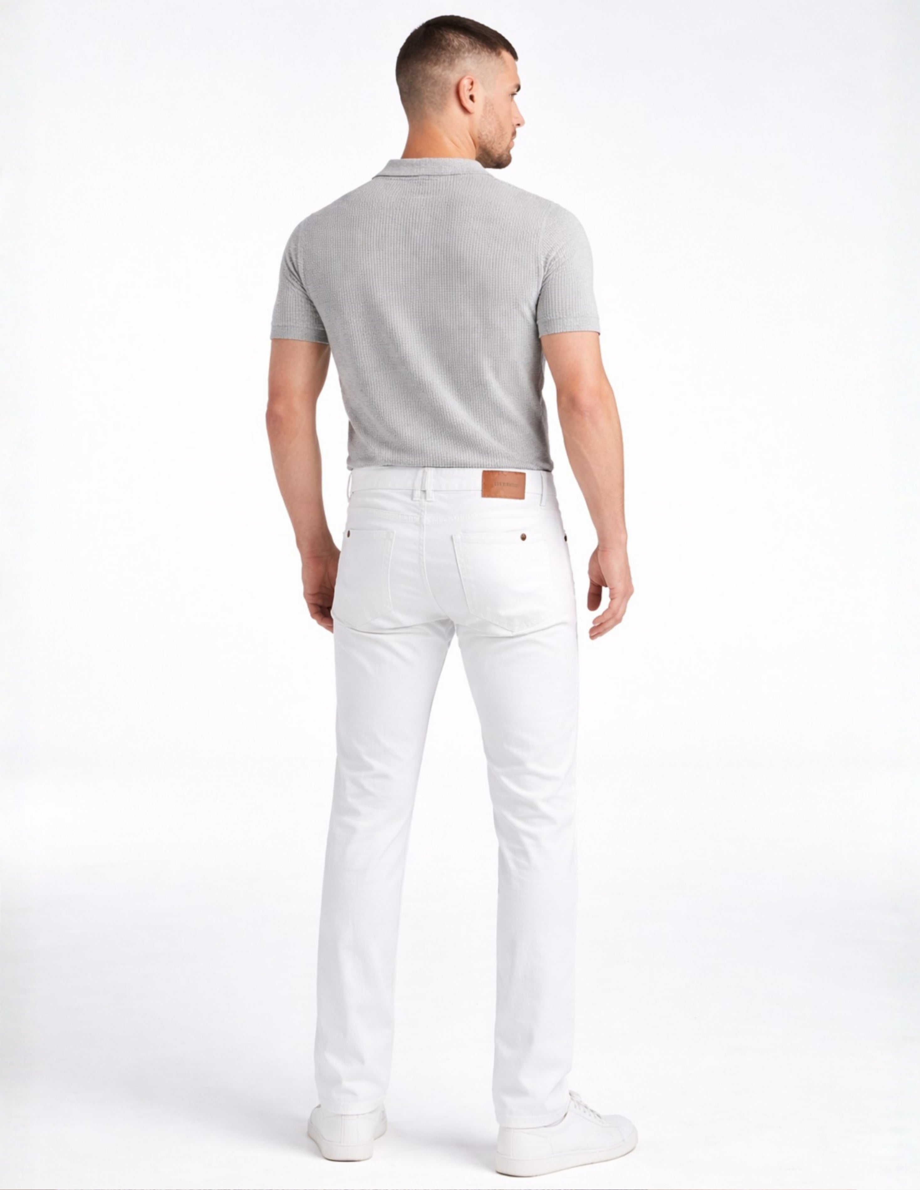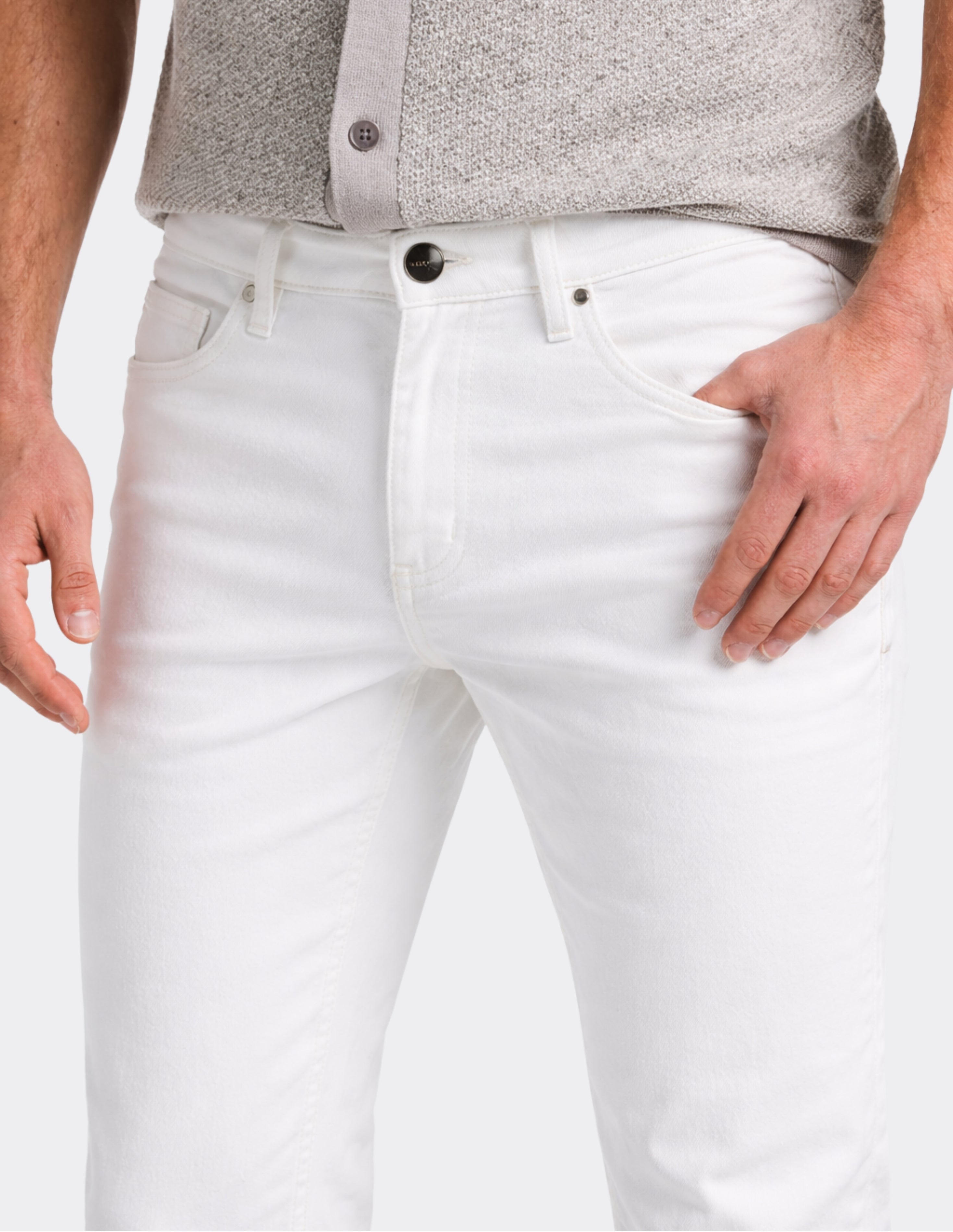 El pantalón Slim Fit en tono Blanco Marfil combina una estética limpia con funcionalidad moderna.