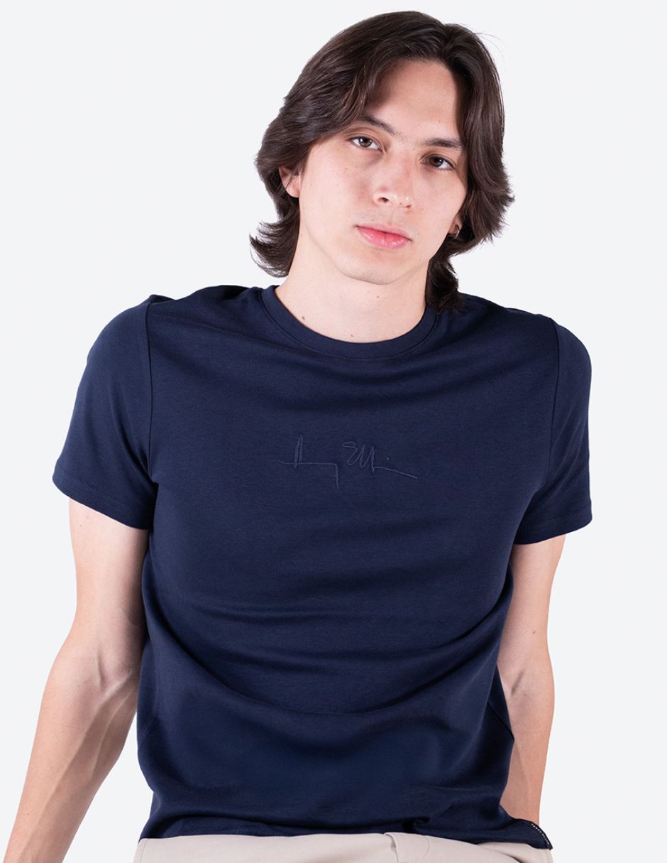 Playera Azul Dark Sapphire de Algodón con Logo Bold y Cuello Redondo