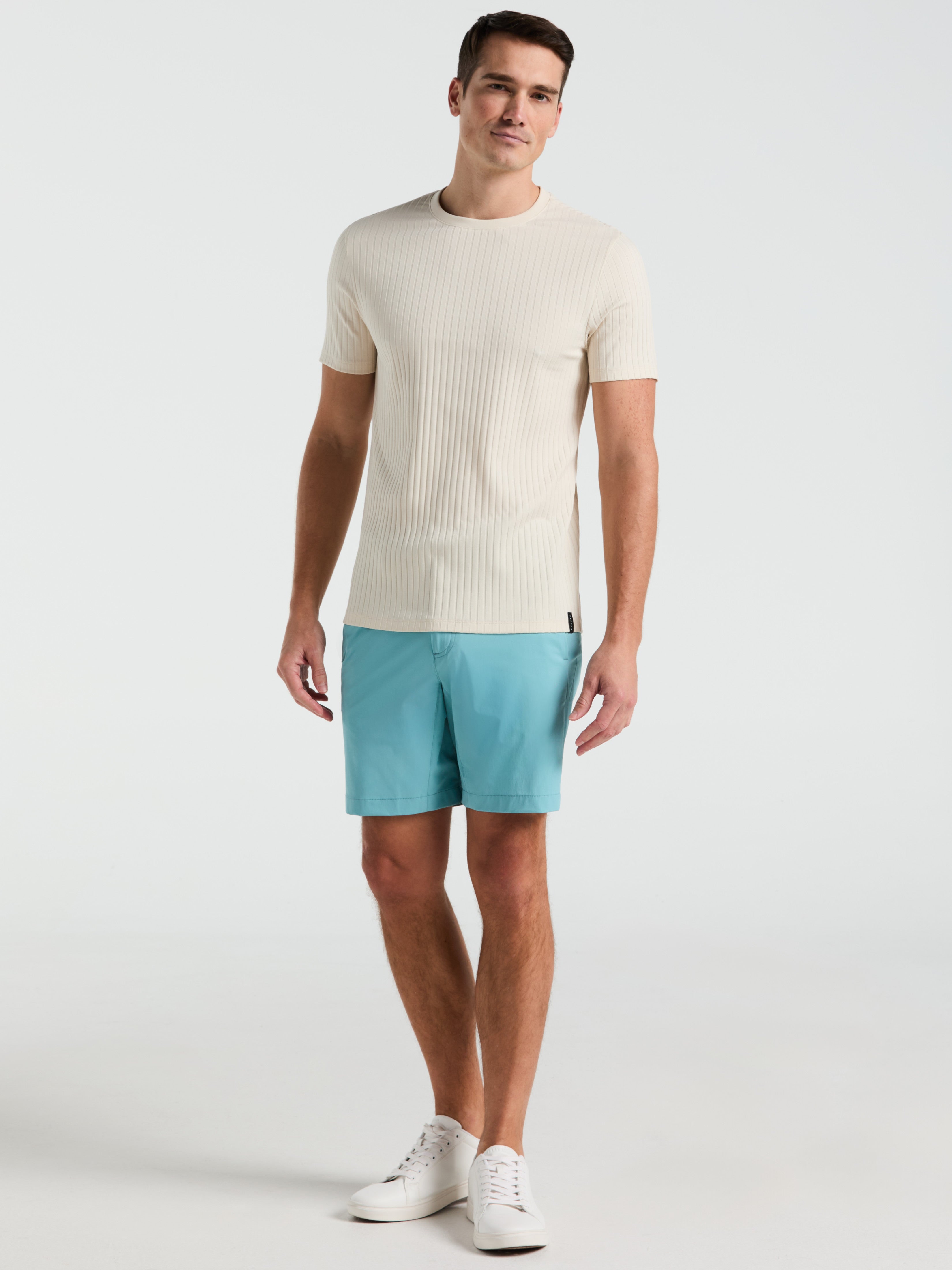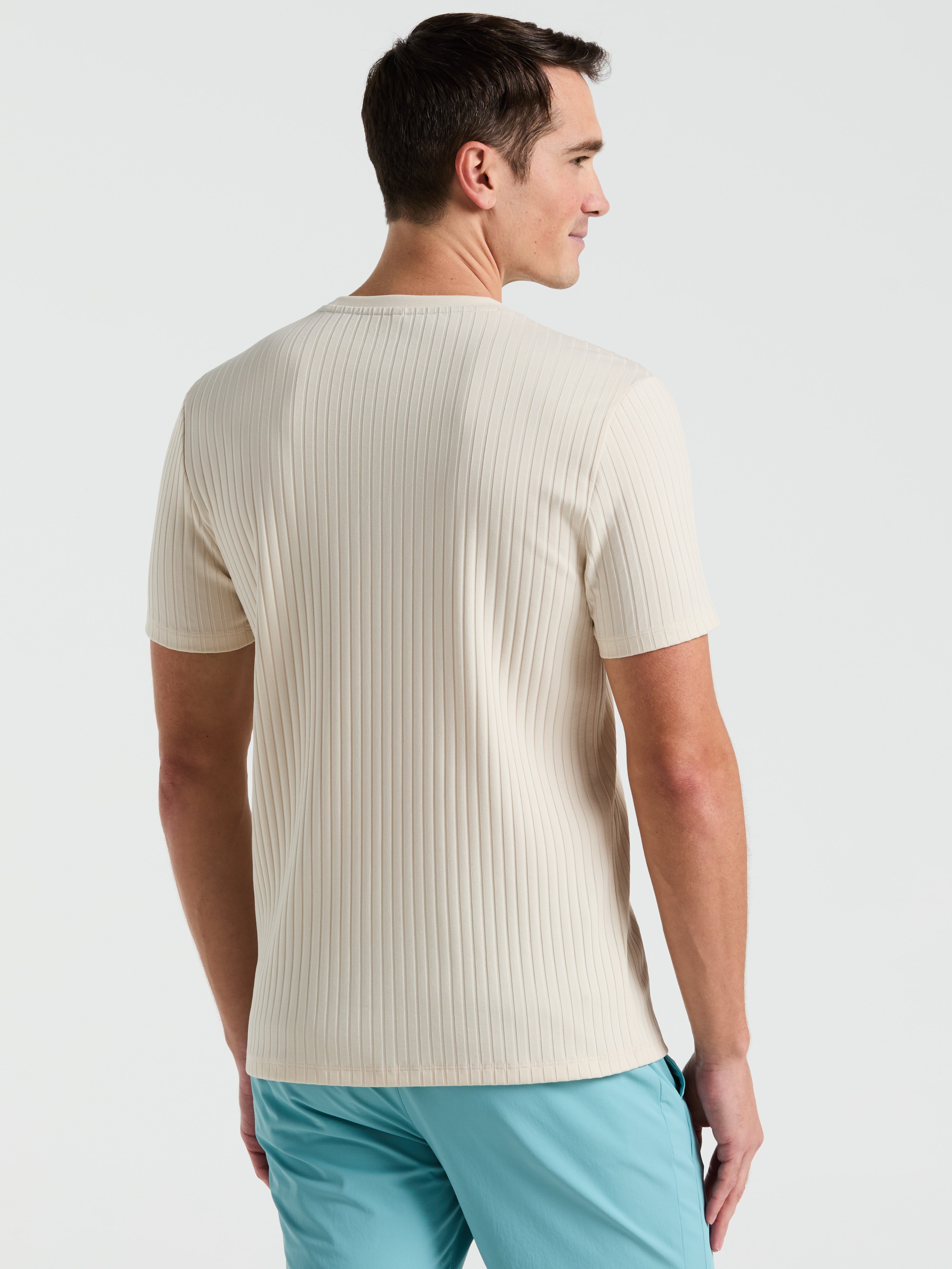 Su diseño clásico de cuello redondo y el corte slim fit ofrecen una silueta estilizada y versátil, ideal para combinar con jeans, chinos o shorts en cualquier ocasión casual.