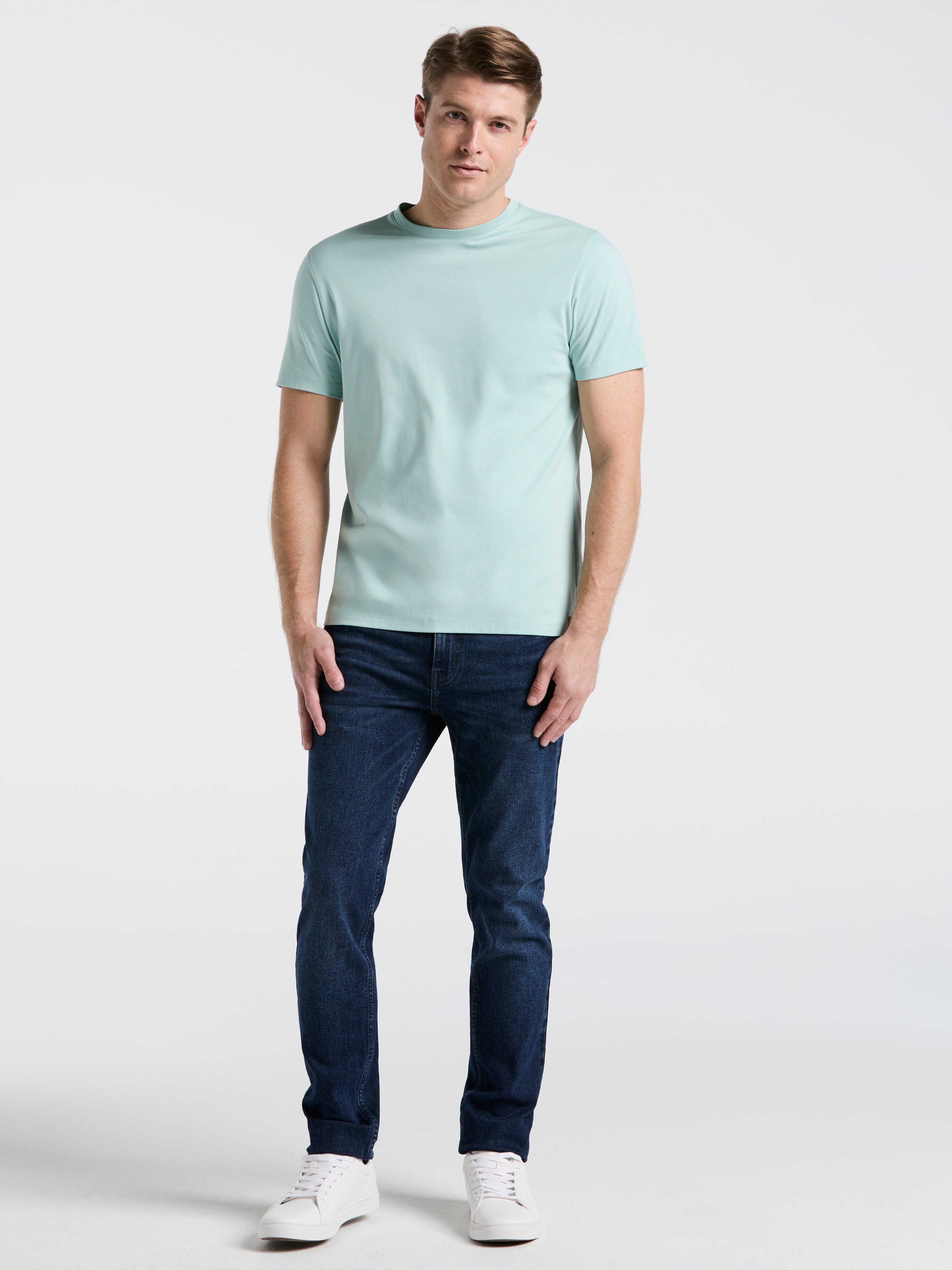 Su diseño minimalista con cuello redondo y manga corta la convierte en un básico versátil que se adapta a cualquier look casual.