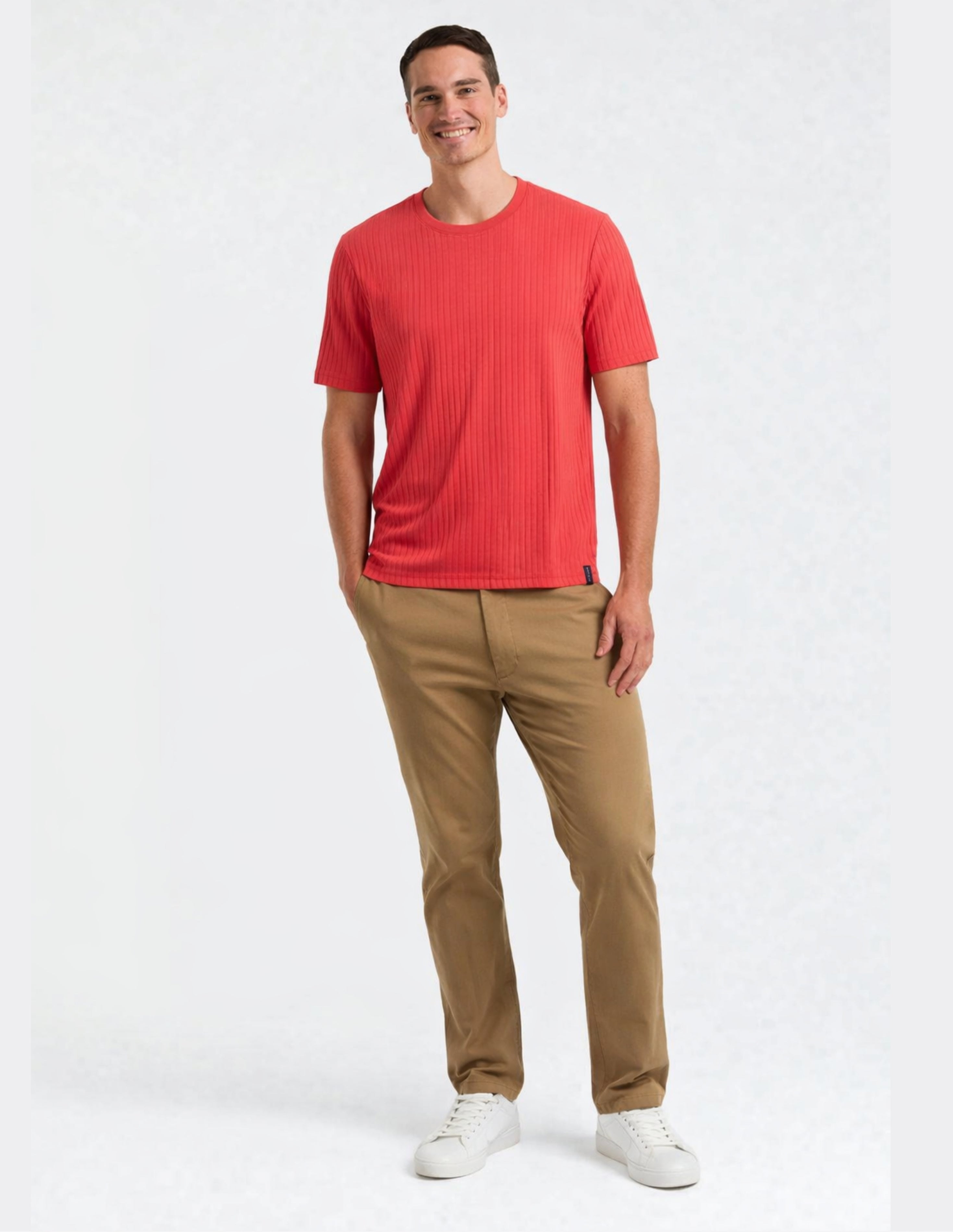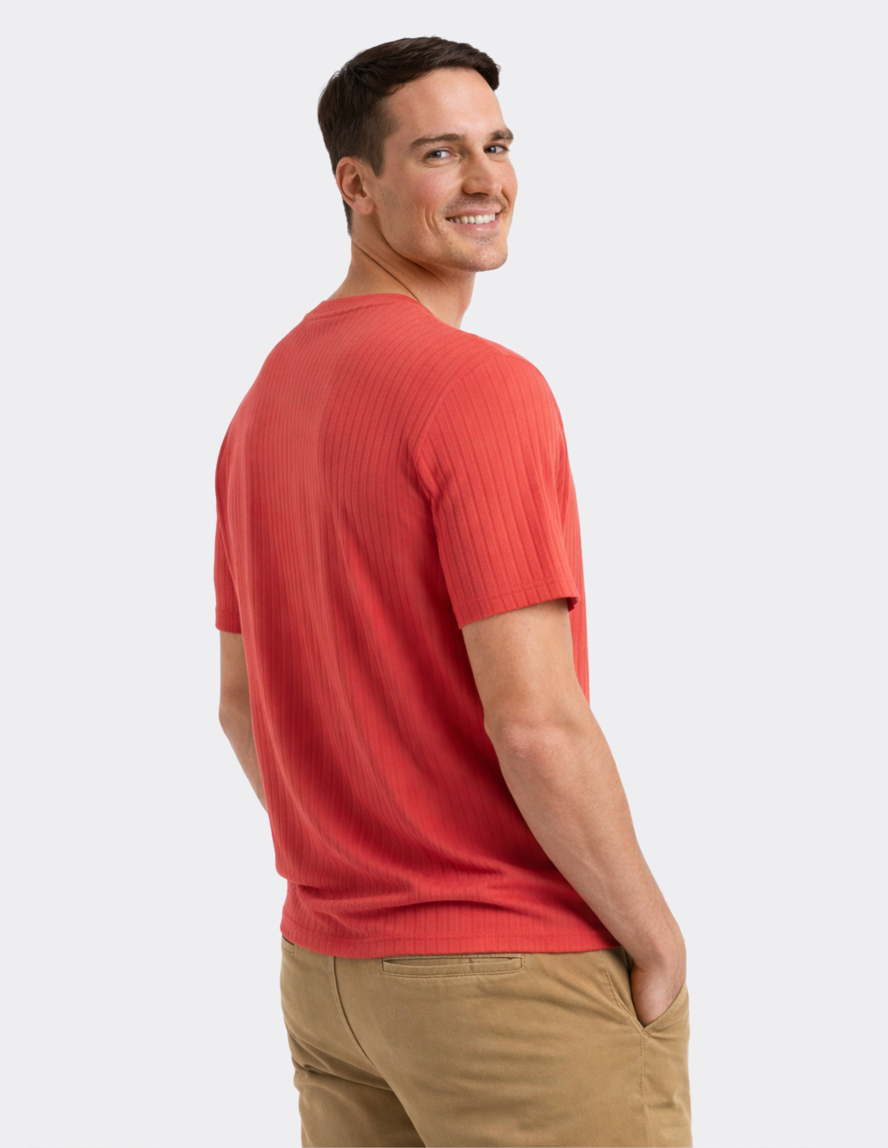 La playera en tono Rojo Bittersweet aporta energía y estilo a tus looks casuales.