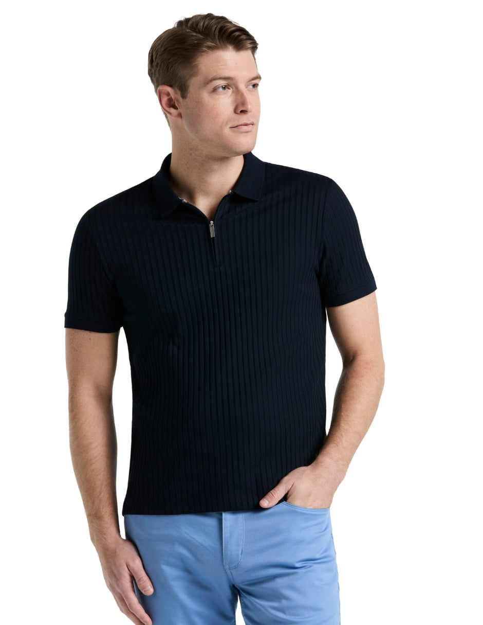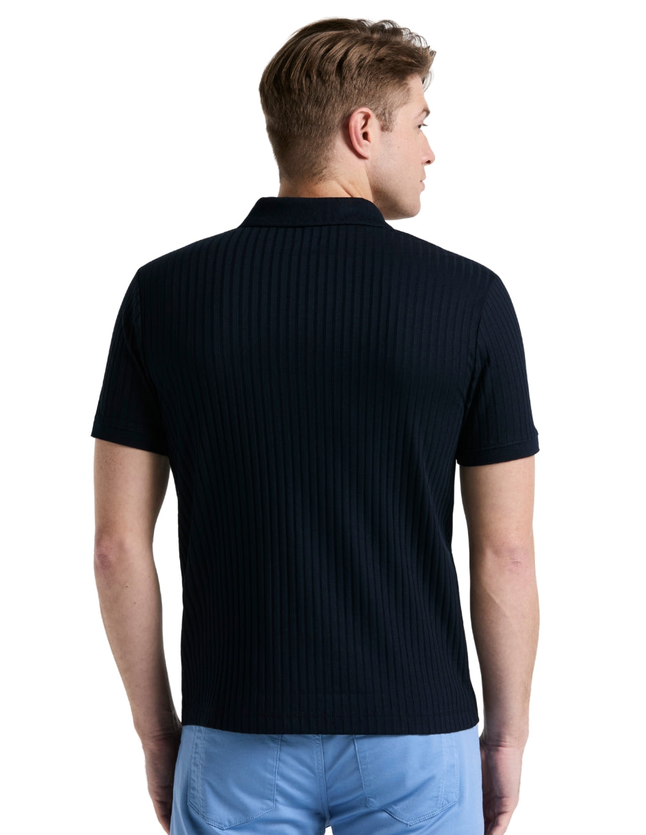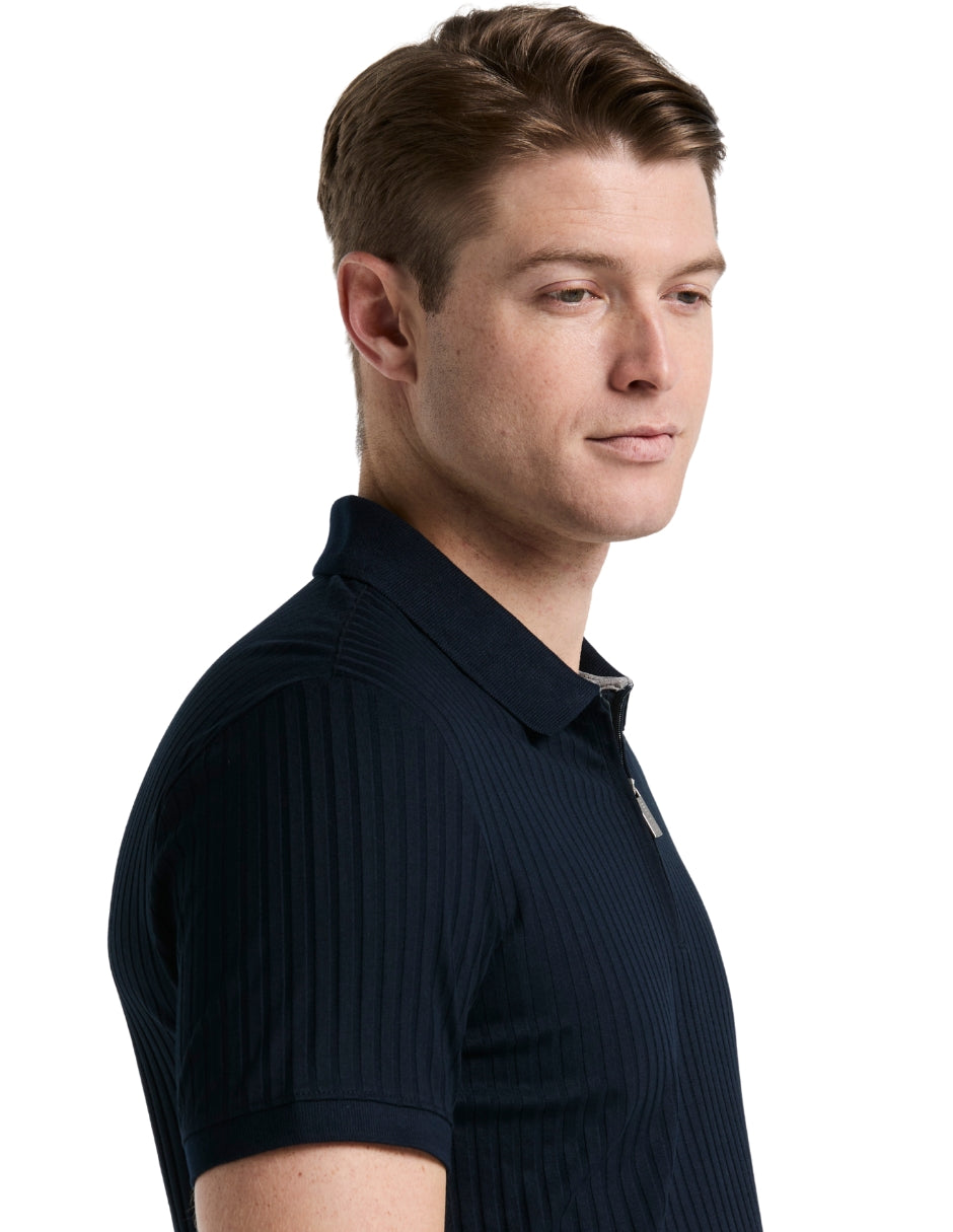 Polo Acanalado Marino con Cremallera al Cuarto