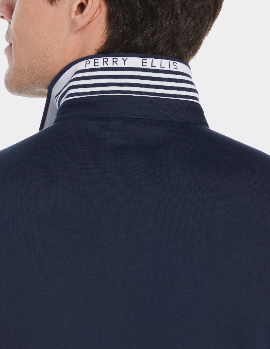 El equilibrio entre frescura y estilo. Este polo Perry Ellis en color Ink está confeccionado en una mezcla ligera de algodón y poliéster que aporta suavidad y comodidad. Su tecnología moisture-wicking ayuda a mantener la piel seca, mientras que el cuello tejido con franjas y logo distintivo eleva su diseño clásico. Con tapeta de tres botones y mangas cortas con puños acanalados, es una prenda versátil que se adapta tanto a ocasiones casuales como semi-formales.