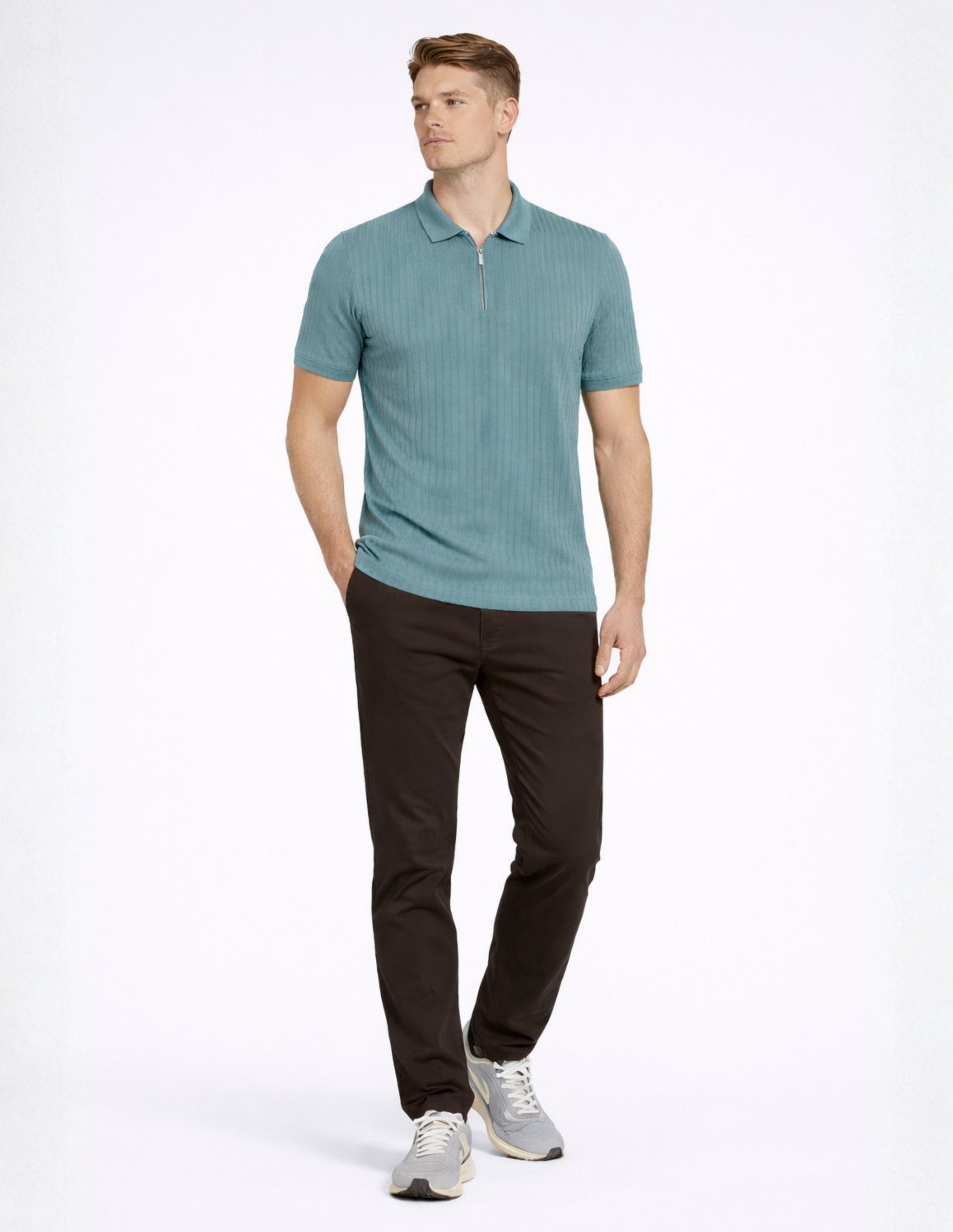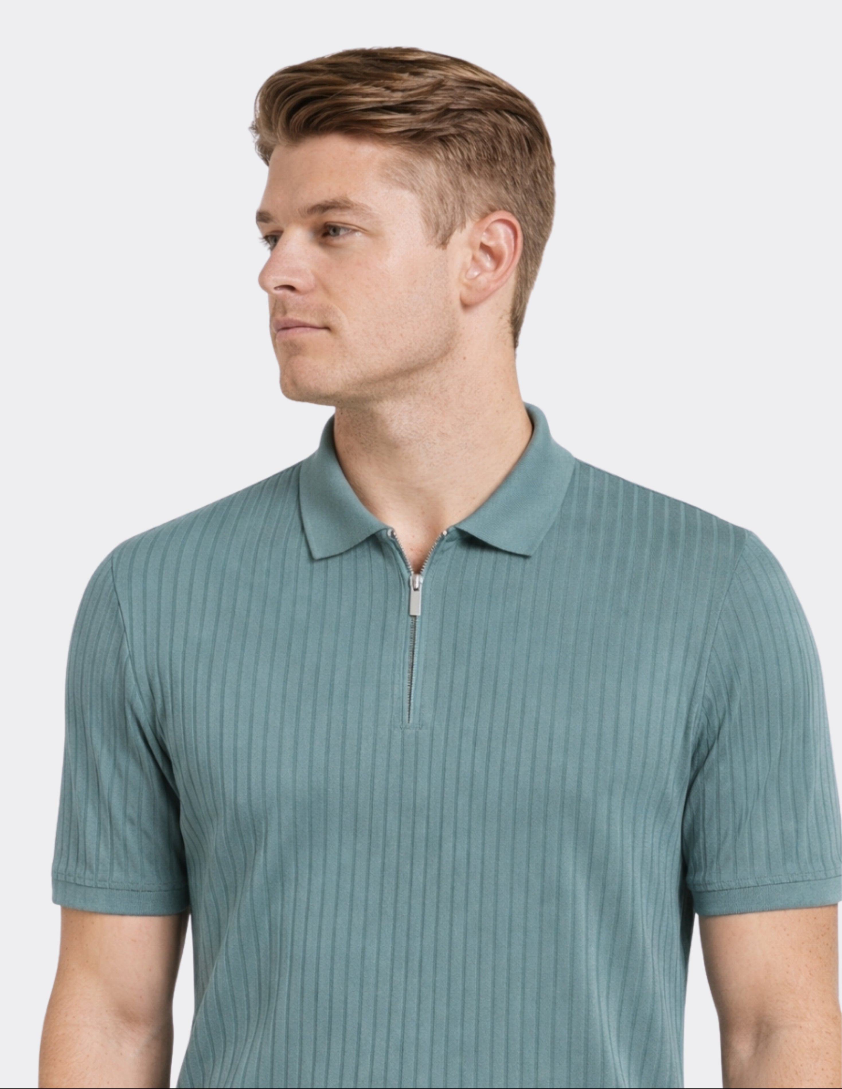 Polo de Manga Corta North Atlantic con Textura Rib y Cierre Zip