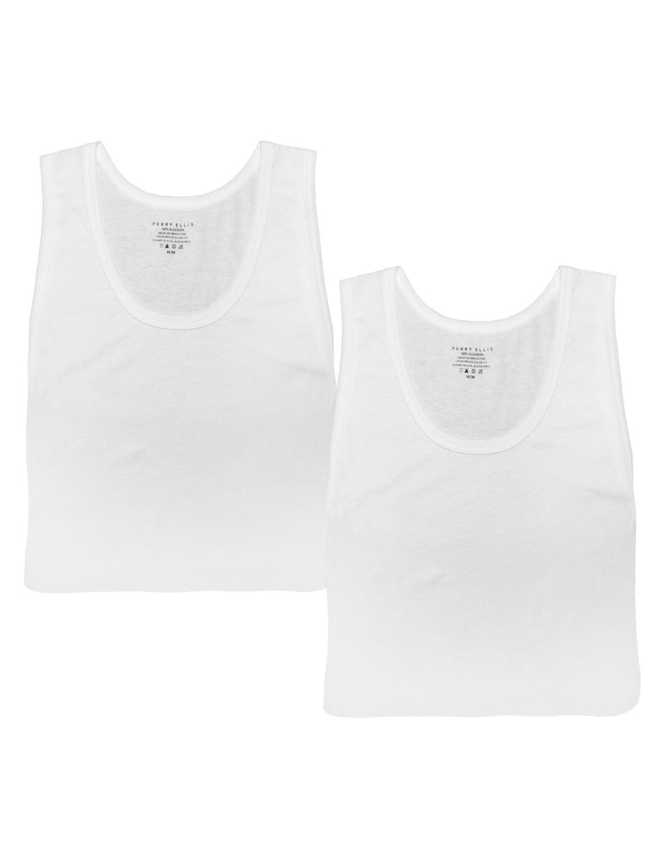 El set de 2 camisetas sin mangas Perry Ellis modelo R210403 combina comodidad, ligereza y estilo en una sola propuesta. Confeccionadas en 100% algodón suave y transpirable, ofrecen una sensación natural de frescura y libertad de movimiento durante todo el día. Su diseño sin mangas favorece la ventilación y el confort, mientras que el corte recto y limpio realza la silueta masculina con un aire moderno y atemporal. Perfectas para usar como prenda interior, deportiva o casual, son la elección ideal para el hombre que está Always Ready para cualquier ocasión.