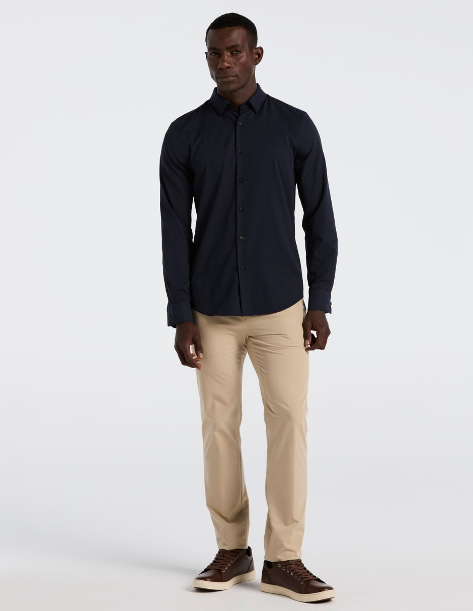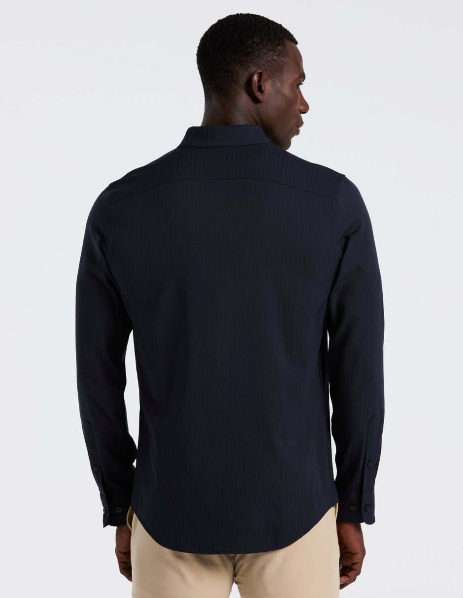 Camisa Slim Fit Azul Marino de Manga Larga con Tejido Dobby Stretch y Cuello Expandible